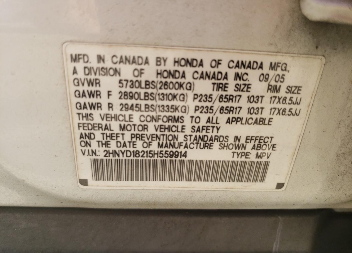VIN:2HNYD18215H559914