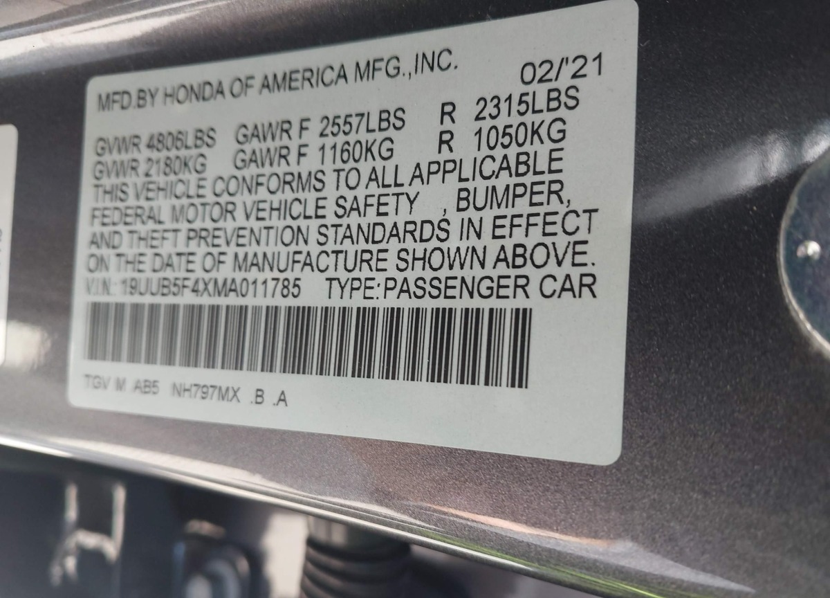 VIN:19UUB5F4XMA011785