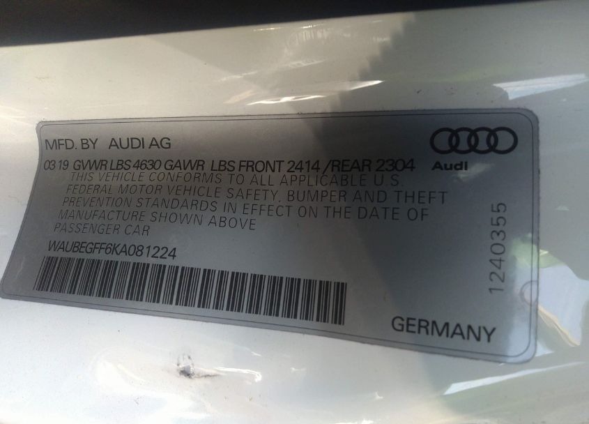 VIN:WAUBEGFF6KA081224