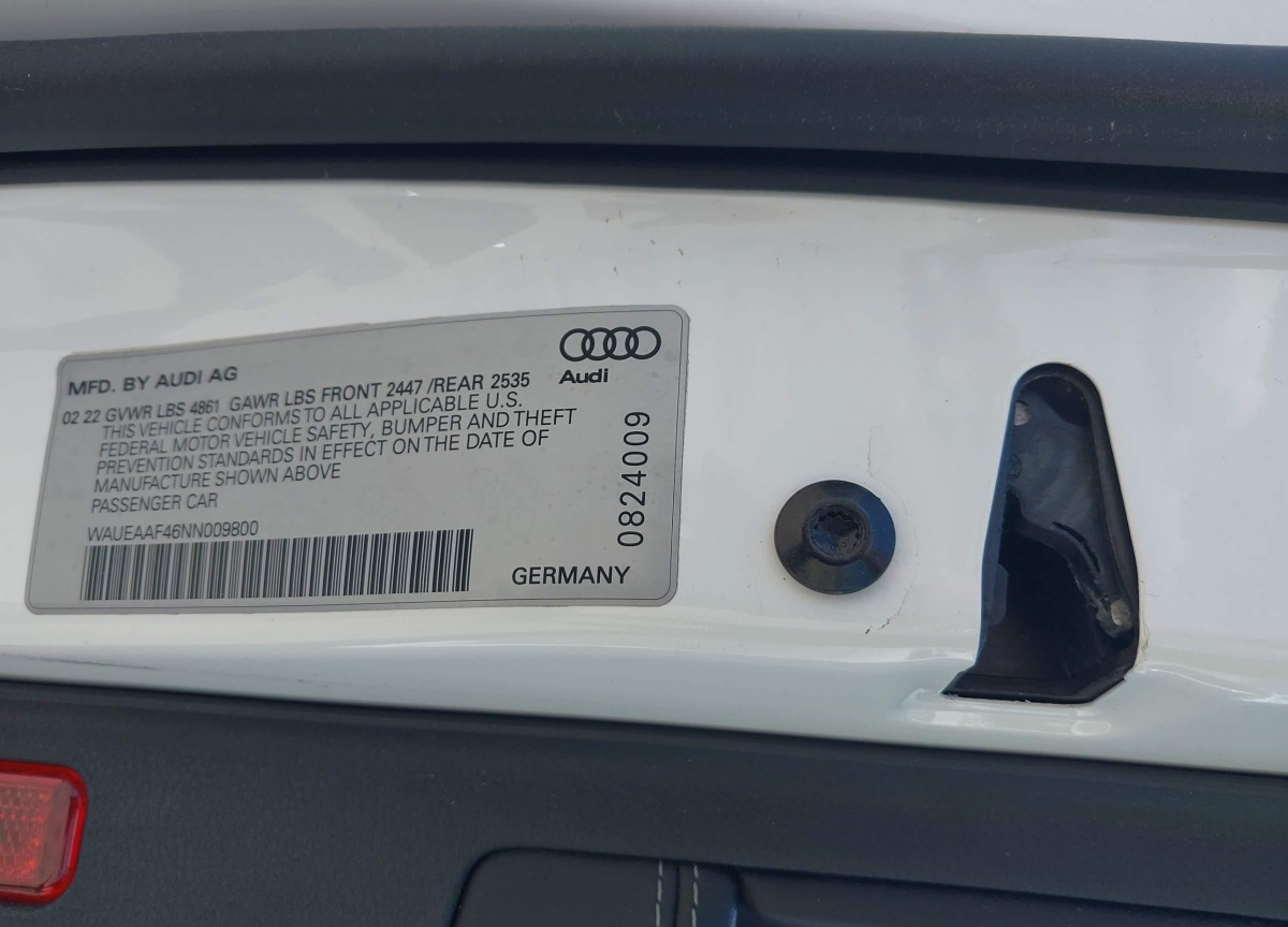 VIN:WAUEAAF46NN009800