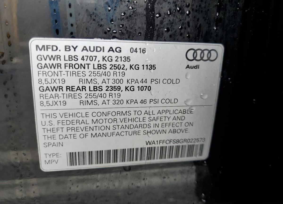 VIN:WA1FFCFS8GR022573