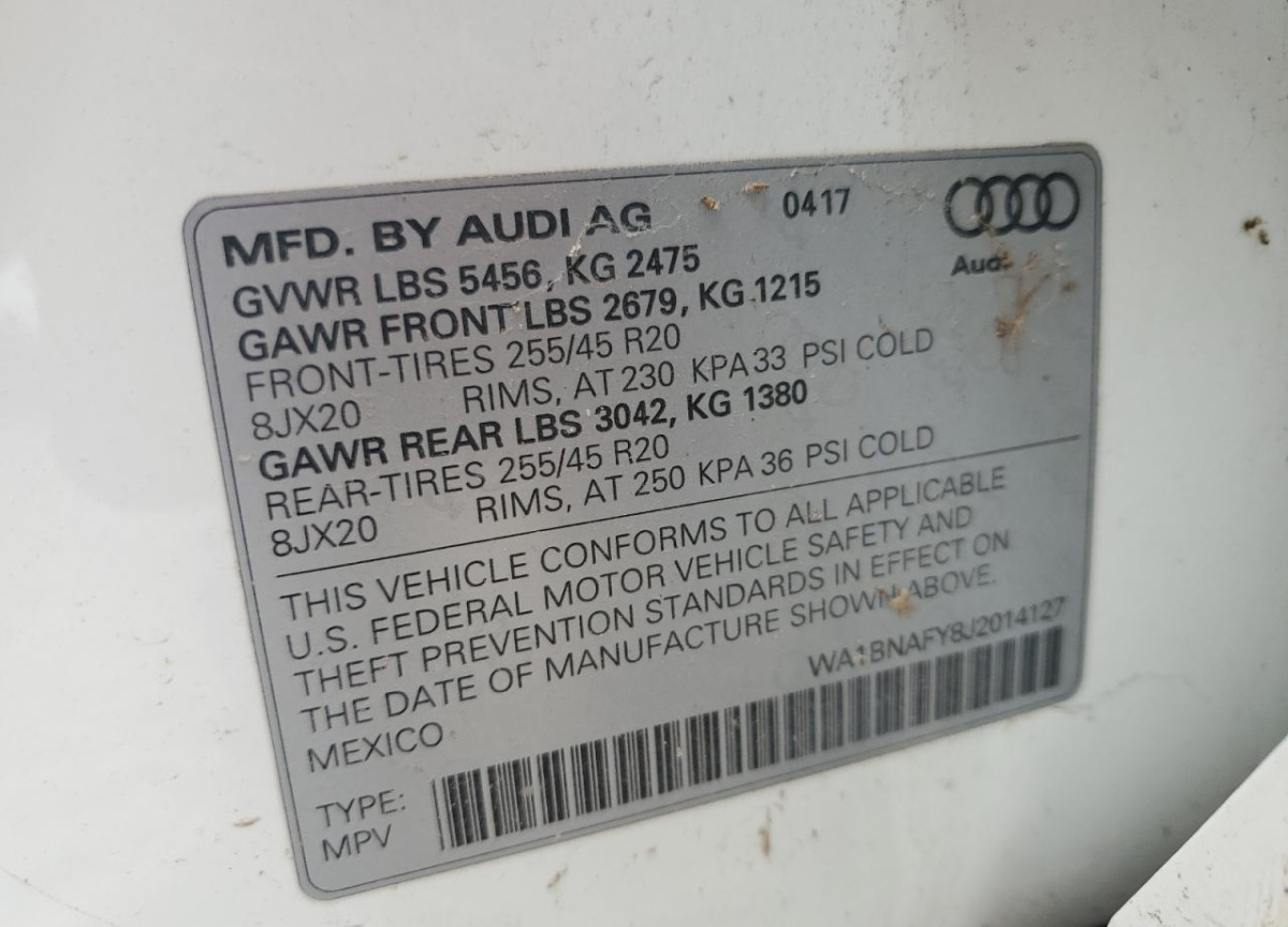 VIN:WA1BNAFY8J2014127