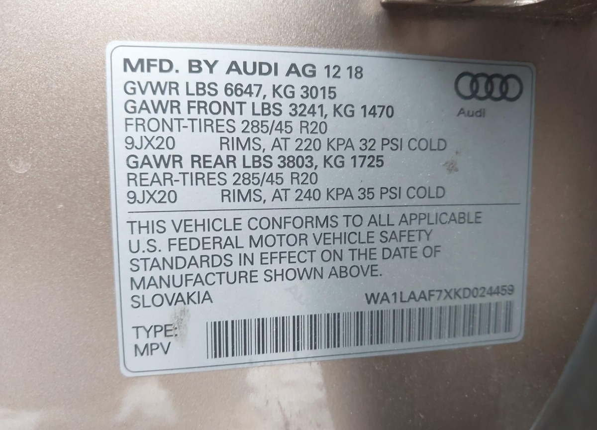 This Audi Q7 2019 Gold was originally purchased at one of the major insurance auctions in the United States or Canada. The vehicle history is tied directly to its VIN code, which makes it possible to track the origin, condition, and circumstances of the sale. The photographs provided represent the actual state of the car at the moment of auction and serve as an important visual record of its technical and cosmetic condition.