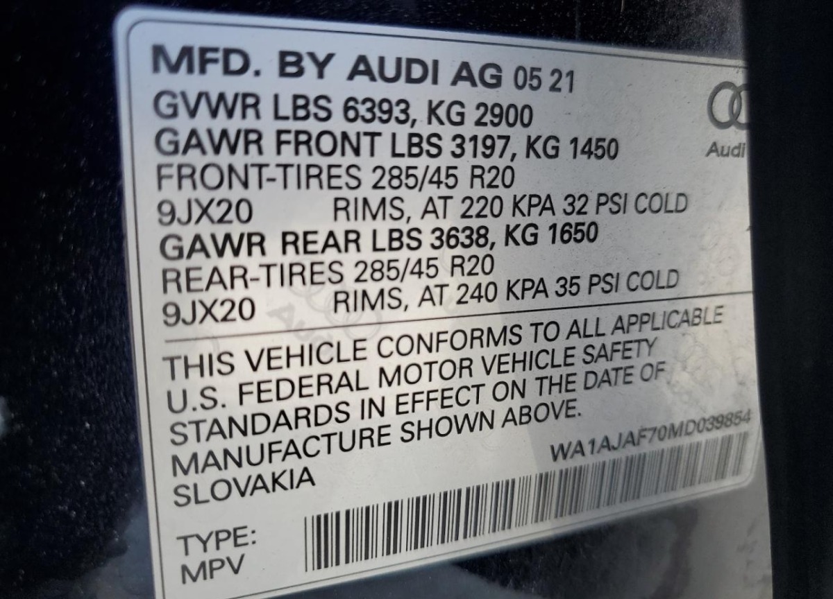 VIN:WA1AJAF70MD039854