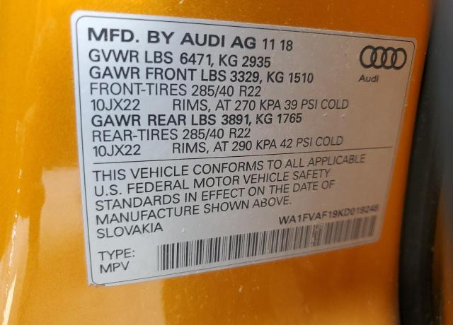 VIN:WA1FVAF19KD019248