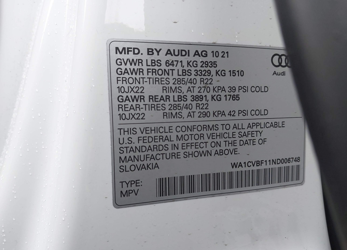 Each lot presented on our website includes comprehensive information tied to the VIN code. This allows users to cross-check vehicle data, verify the history of ownership, and confirm accident or insurance records. The Audi Q8 2022 White corresponds to a car that was listed through one of the large insurance auctions in USA, which guarantees traceability and transparency of the information.