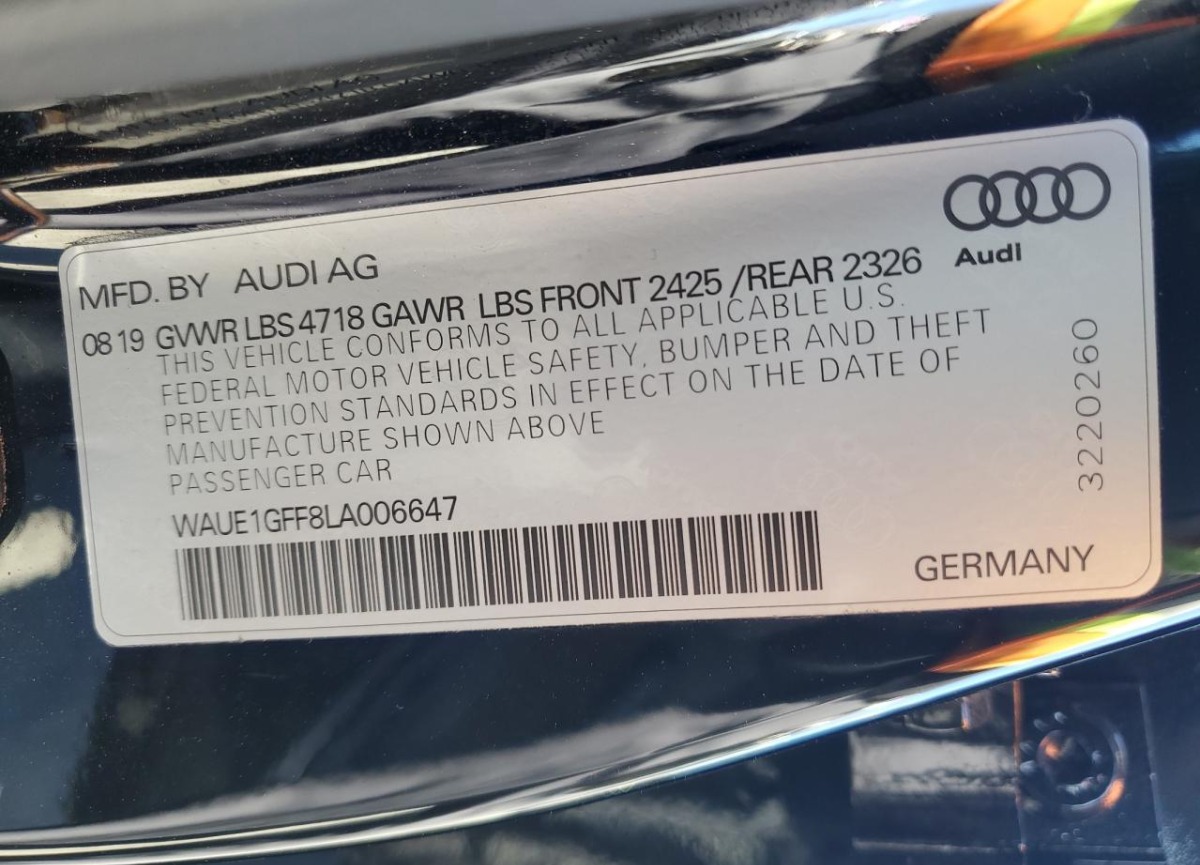 VIN:WAUE1GFF8LA006647