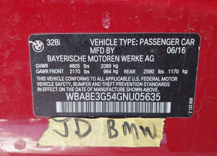 VIN:WBA8E3G54GNU05635