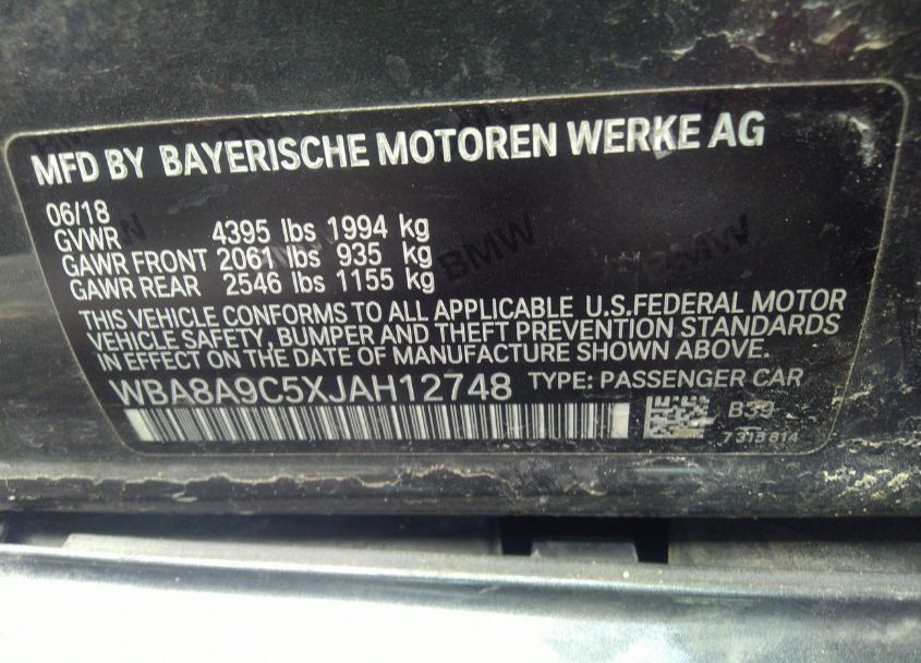 VIN:WBA8A9C5XJAH12748