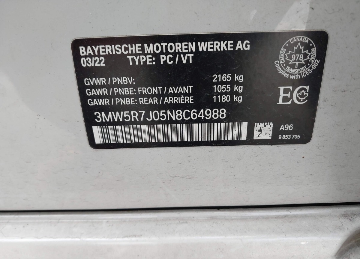 3MW5R7J05N8C64988 BMW 3 Series 2022 White – history, photos, price