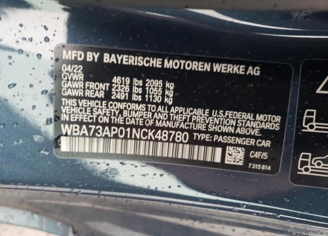 VIN:WBA73AP01NCK48780