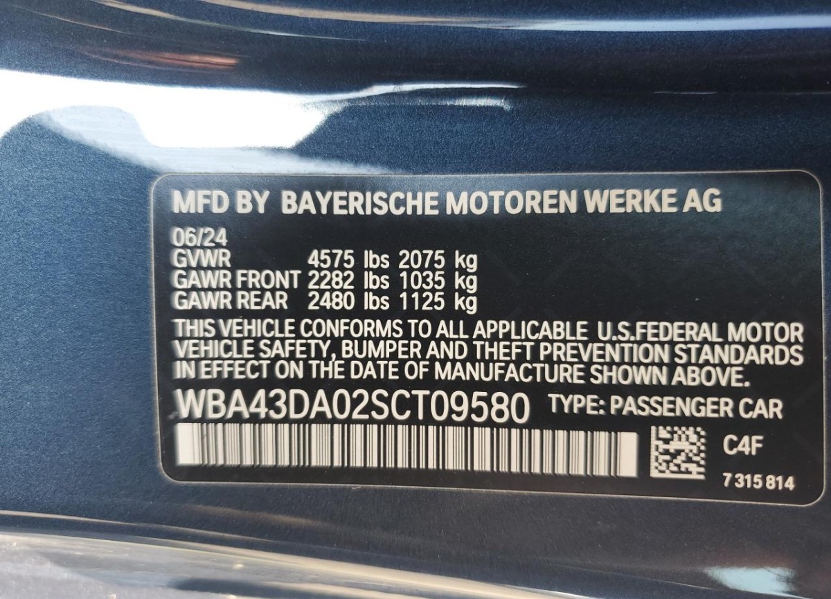 VIN:WBA43DA02SCT09580