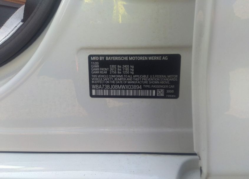 VIN:WBA73BJ08MWX03894