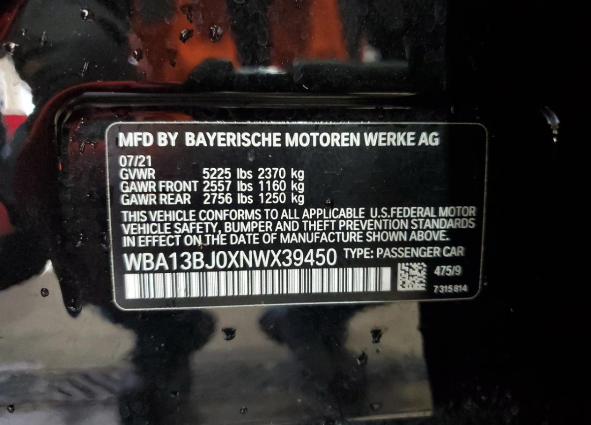 VIN:WBA13BJ0XNWX39450