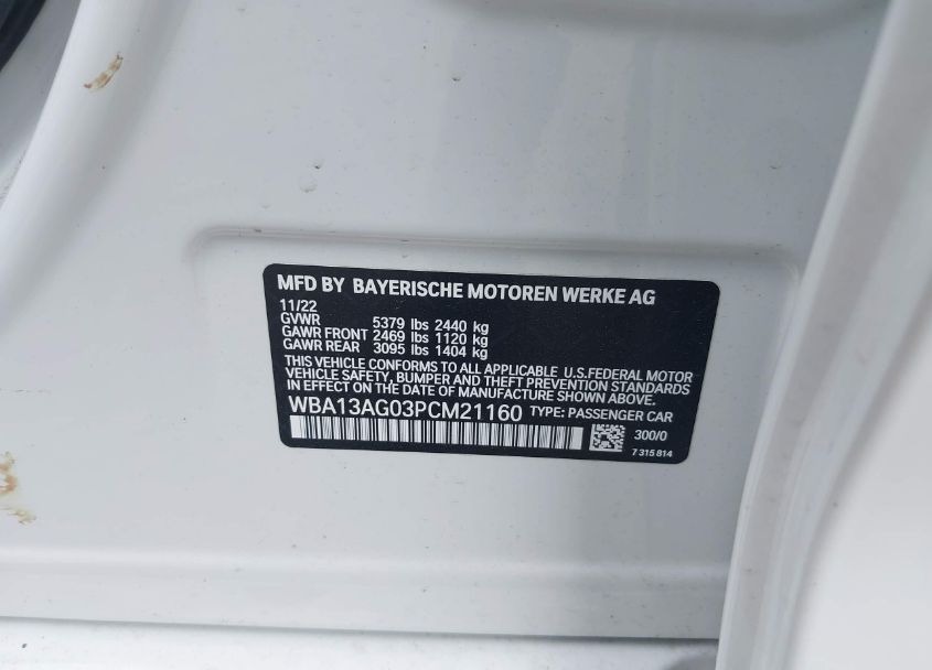 VIN:WBA13AG03PCM21160