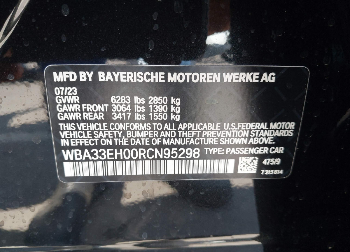 VIN:WBA33EH00RCN95298
