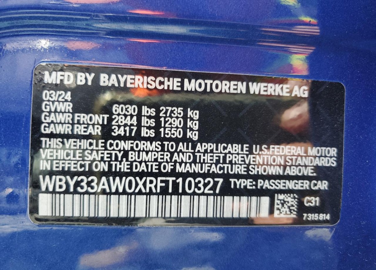VIN:WBY33AW0XRFT10327