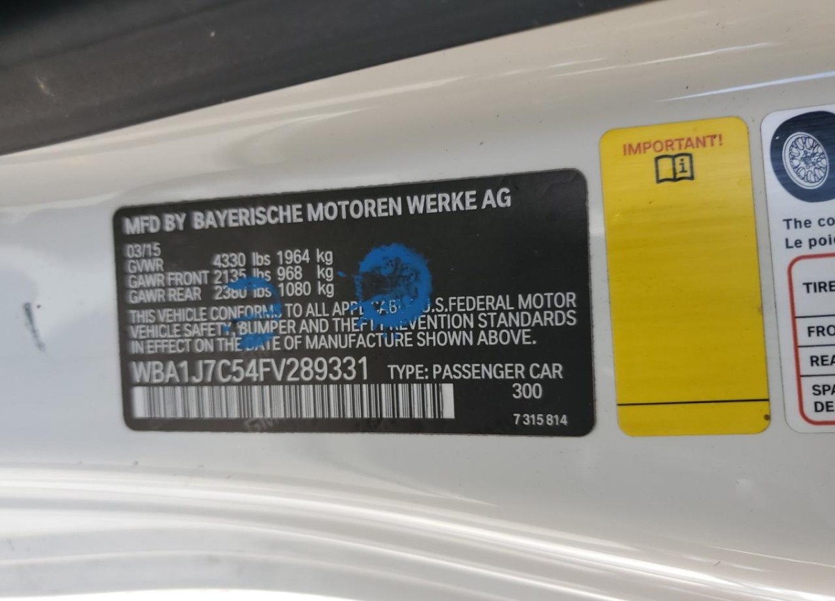 VIN:WBA1J7C54FV289331