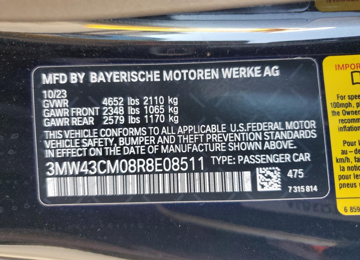 VIN:3MW43CM08R8E08511