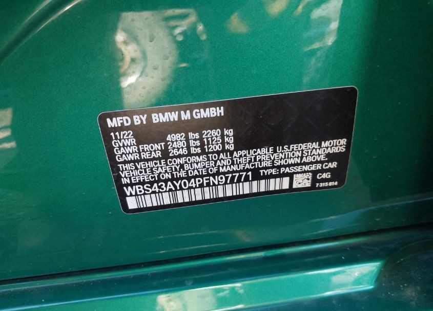 • VIN: WBS43AY04PFN97771
