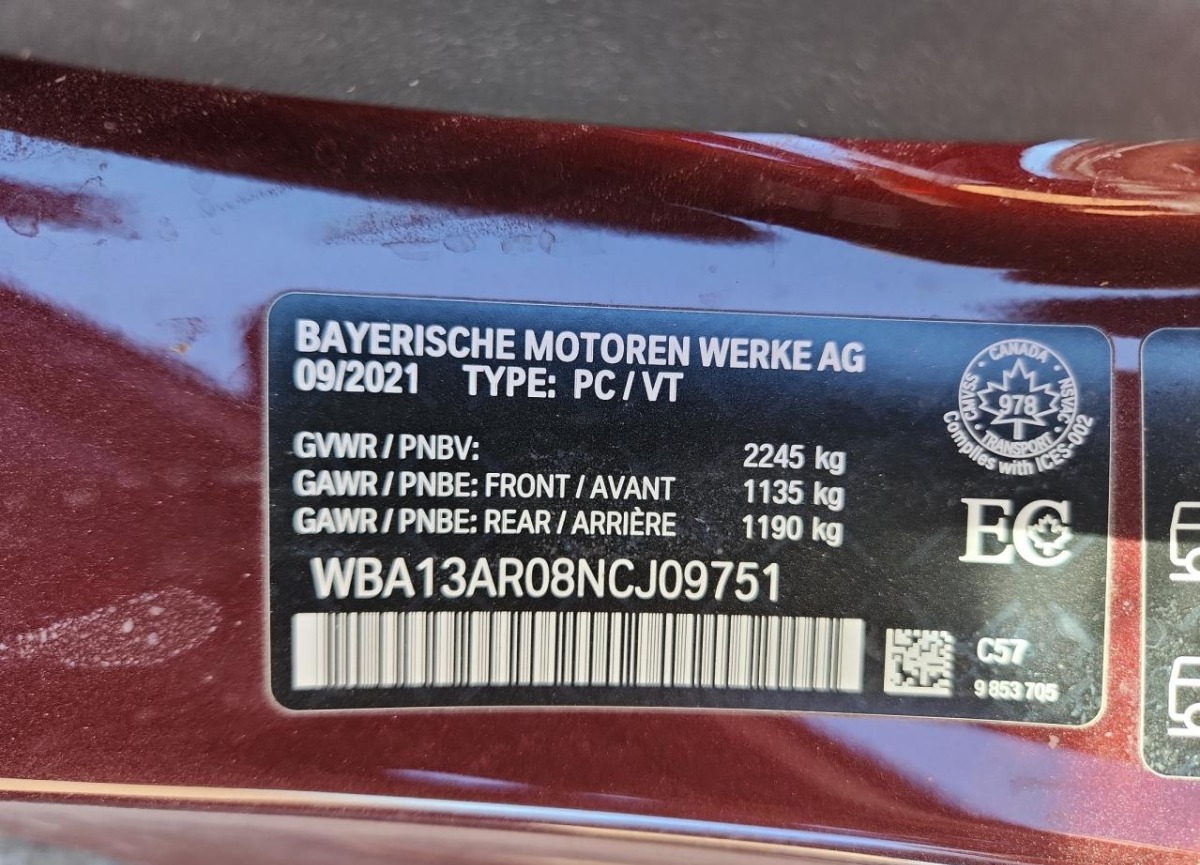 VIN:WBA13AR08NCJ09751