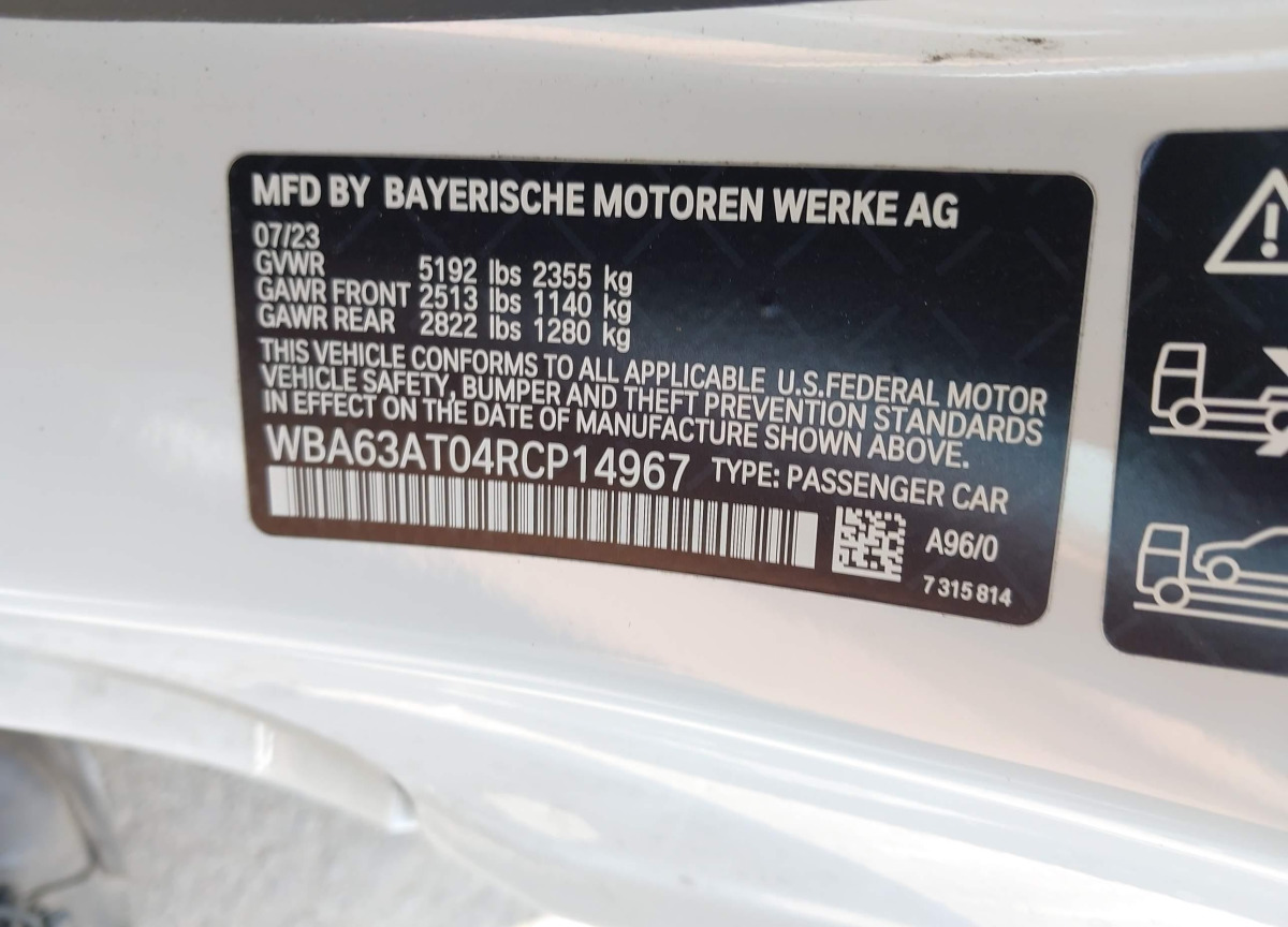VIN:WBA63AT04RCP14967
