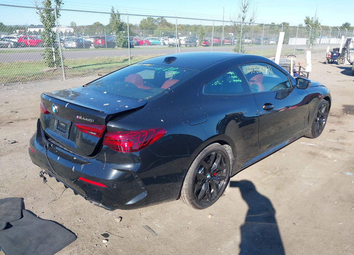 The BMW M440i 2025 Black is equipped with a 3.0l i-6 di, dohc, vvt, turbo, 382hp engine. This power unit is known for its efficiency and reliability, and it is part of modern generation of engines designed to balance performance with fuel economy. According to the auction data, the vehicle was registered with only 141 of mileage at the time of sale.
