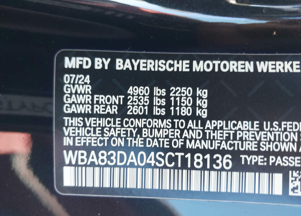 VIN:WBA83DA04SCT18136