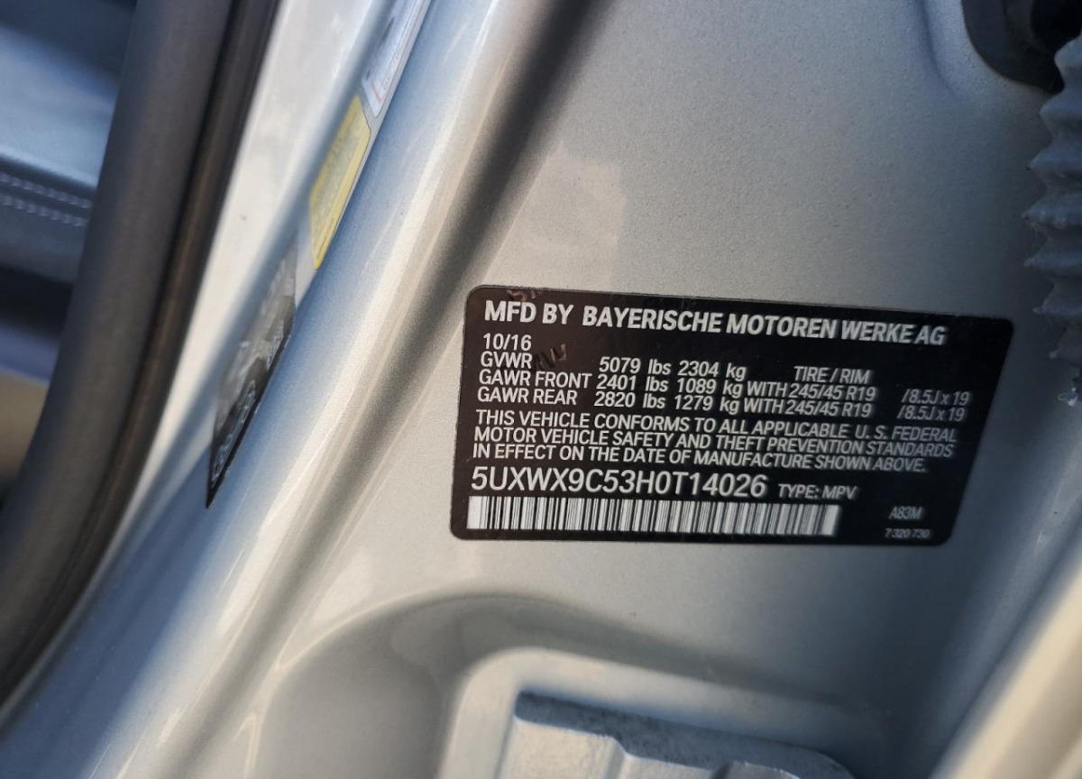 VIN:5UXWX9C53H0T14026