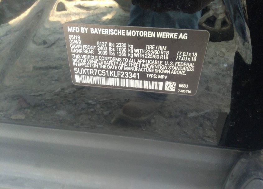 VIN:5UXTR7C51KLF23341