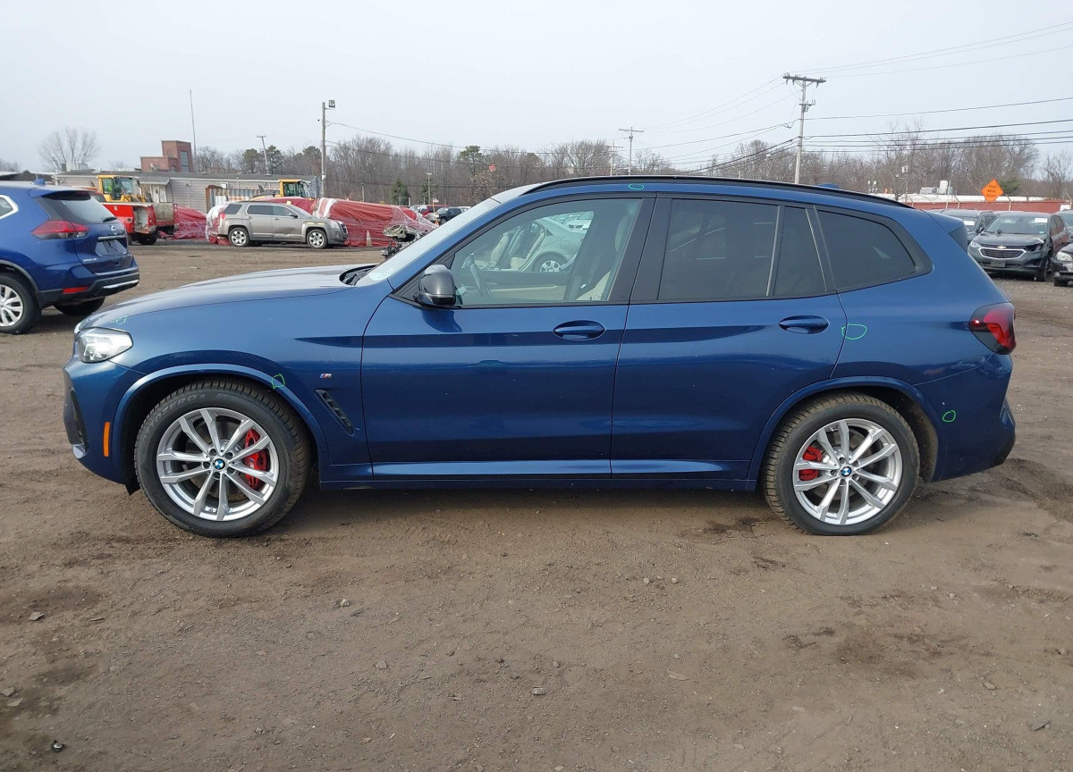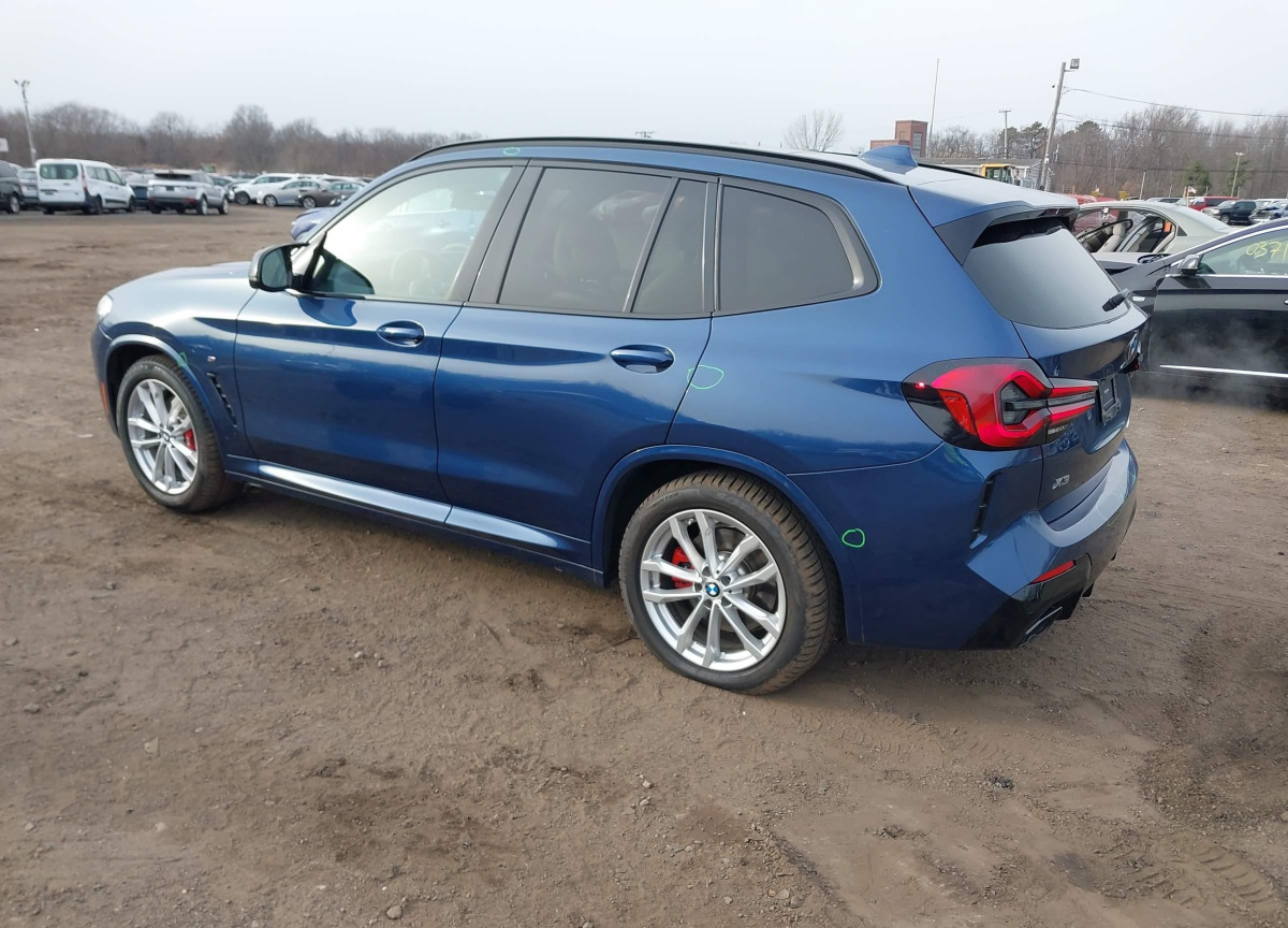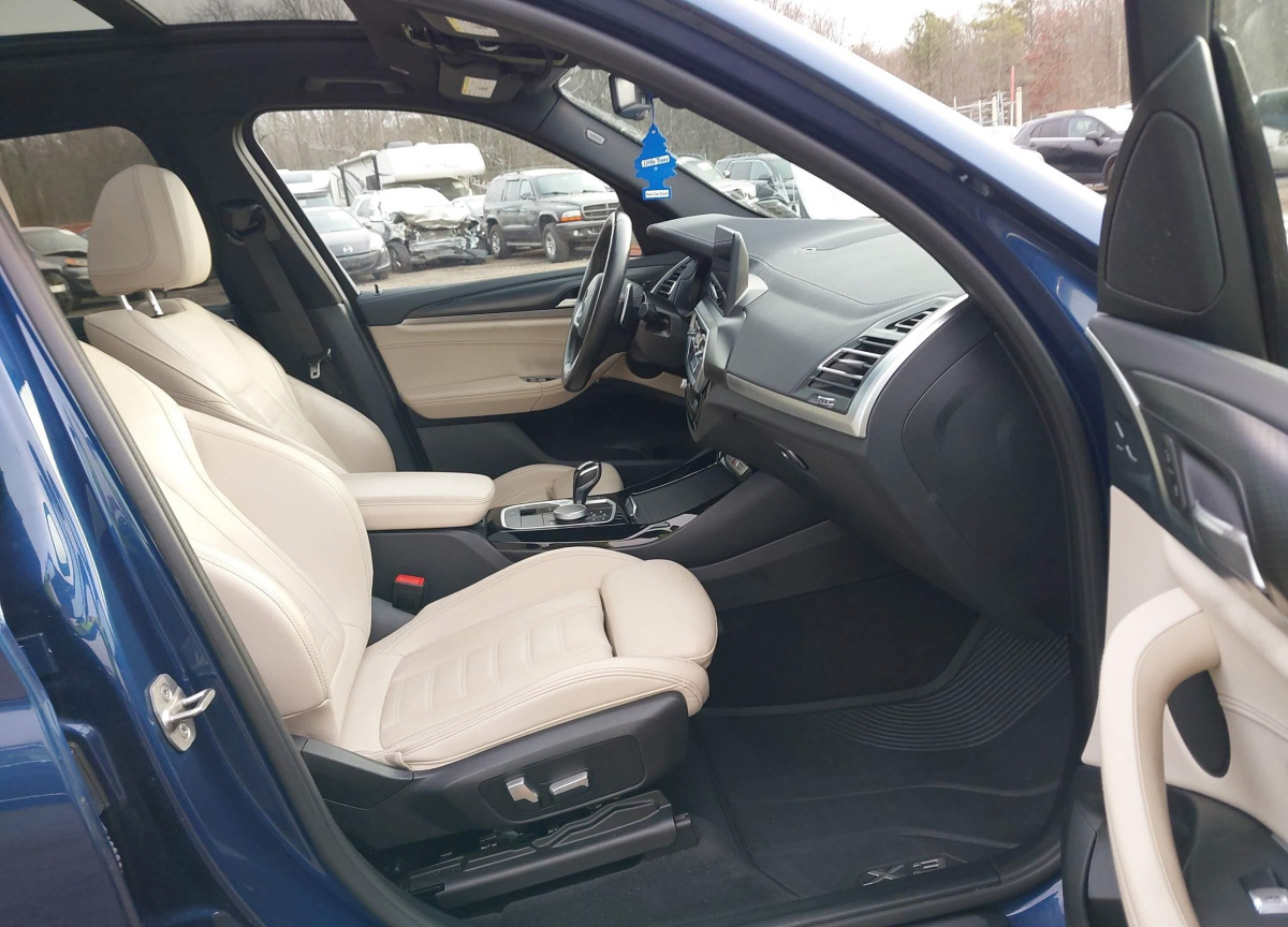 The BMW X3 2022 Blue is equipped with a 3.0l i-6 di, dohc, vvt, turbo, 382hp engine. This power unit is known for its efficiency and reliability, and it is part of modern generation of engines designed to balance performance with fuel economy. According to the auction data, the vehicle was registered with only 34245 of mileage at the time of sale.