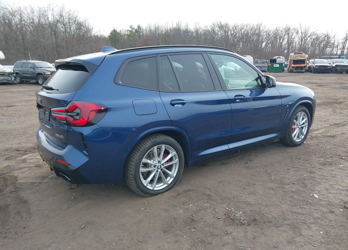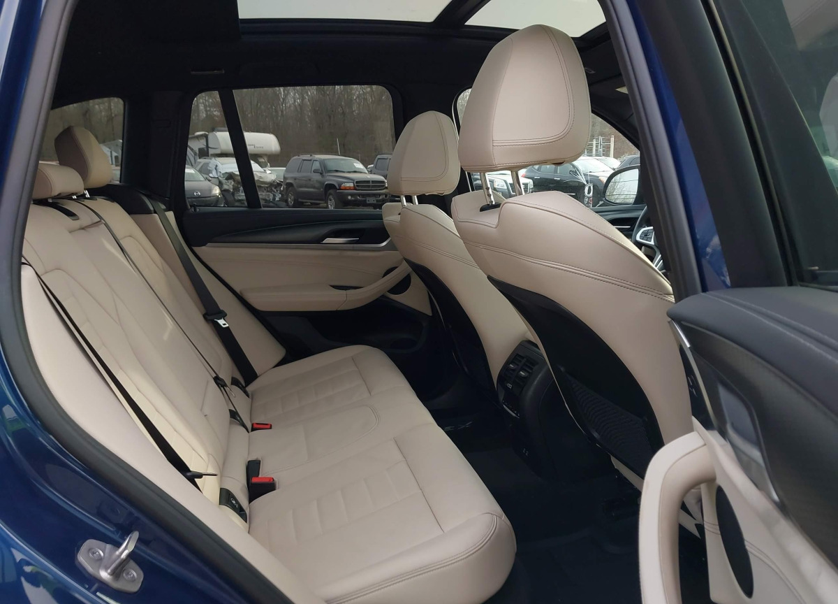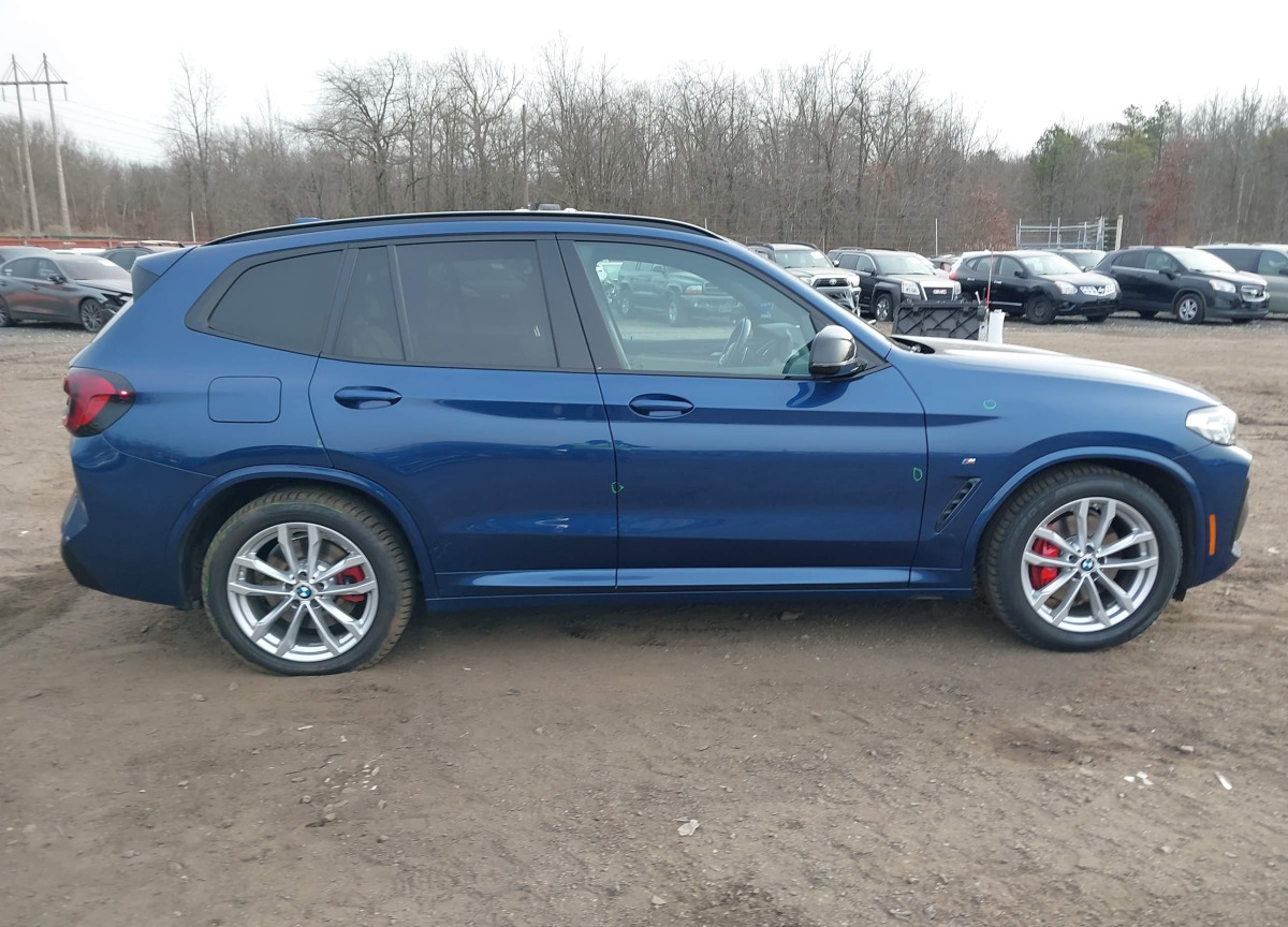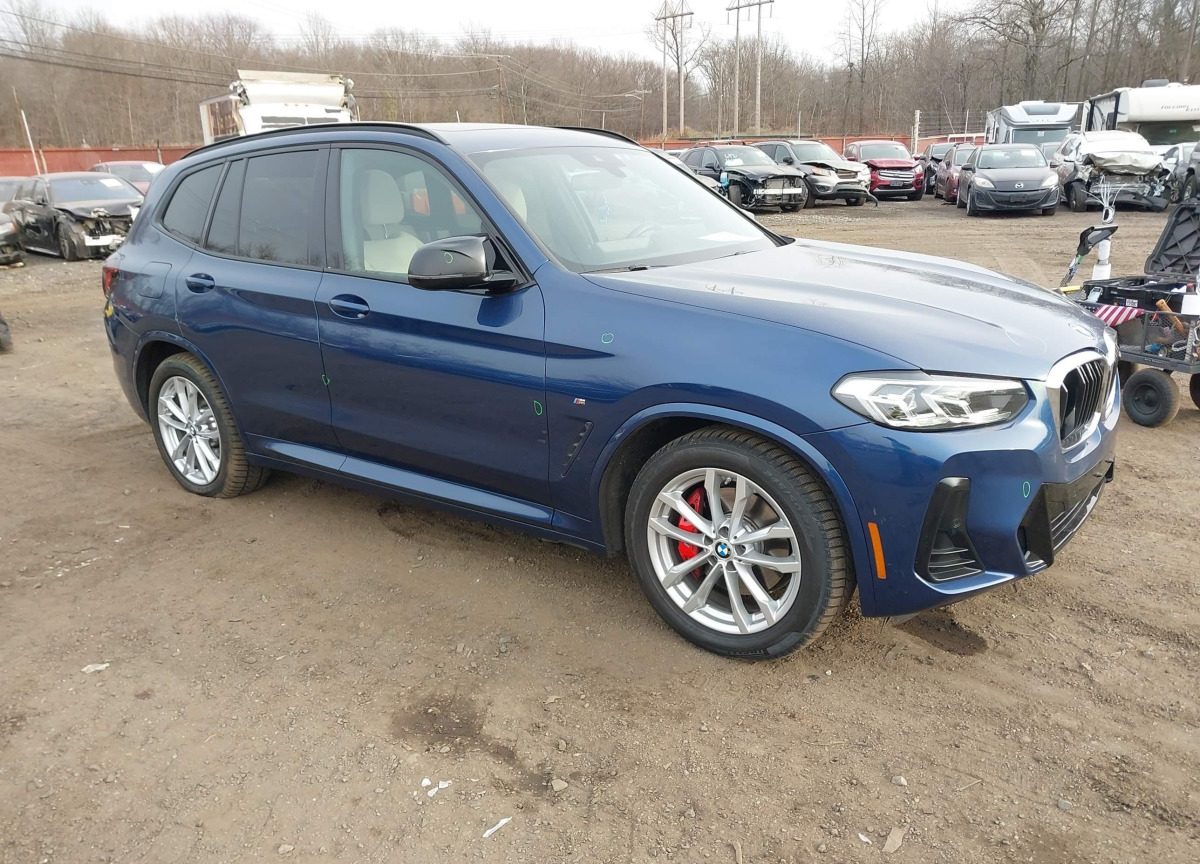 The BMW X3 2022 Blue is equipped with a 3.0l i-6 di, dohc, vvt, turbo, 382hp engine. This power unit is known for its efficiency and reliability, and it is part of modern generation of engines designed to balance performance with fuel economy. According to the auction data, the vehicle was registered with only 34245 of mileage at the time of sale.