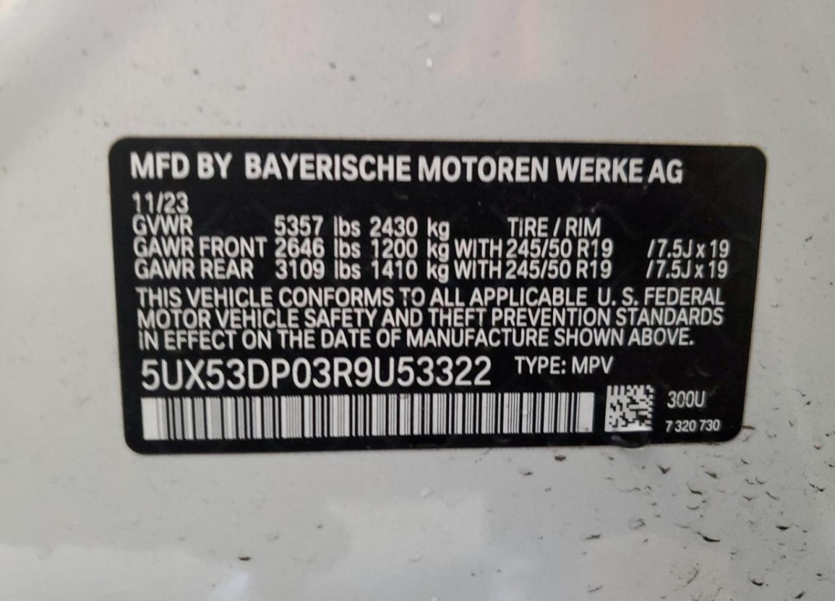 5UX53DP03R9U53322 BMW X3 2024 White – history, photos, price