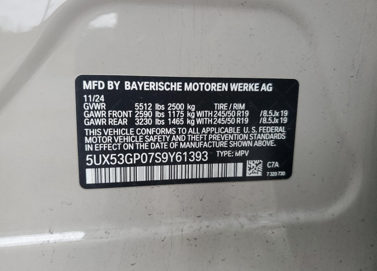 VIN:5UX53GP07S9Y61393