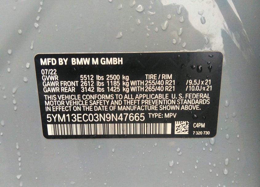 • VIN: 5YM13EC03N9N47665