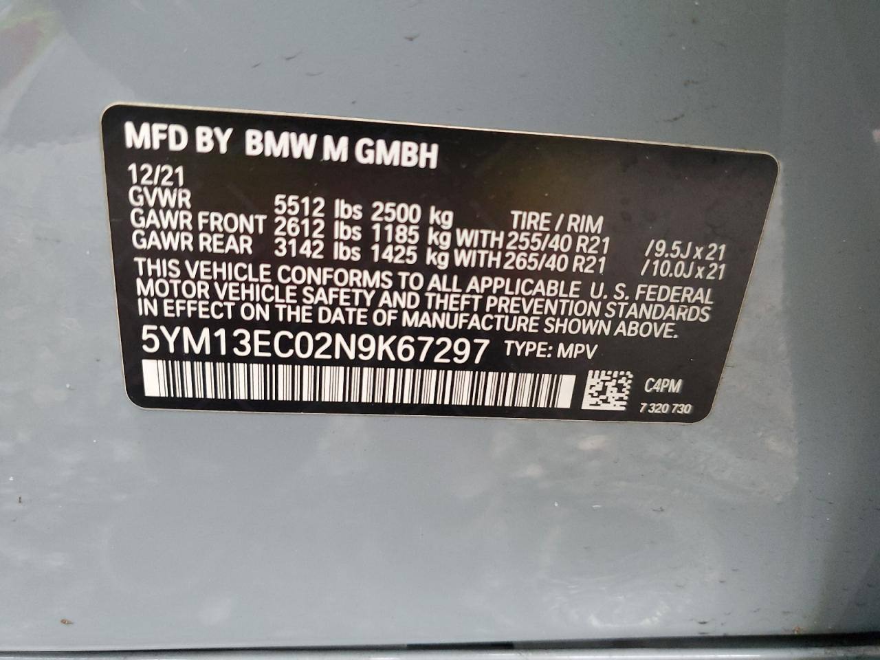 VIN:5YM13EC02N9K67297