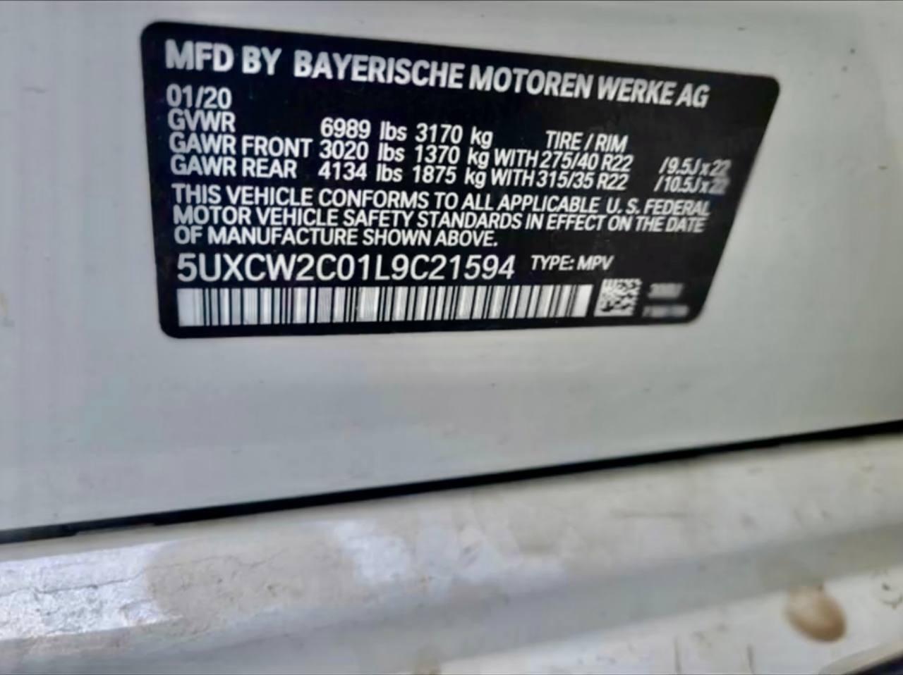 VIN:5UXCW2C01L9C21594