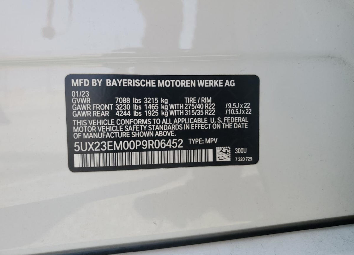 5UX23EM00P9R06452 BMW X7 2023 White – history, photos, price