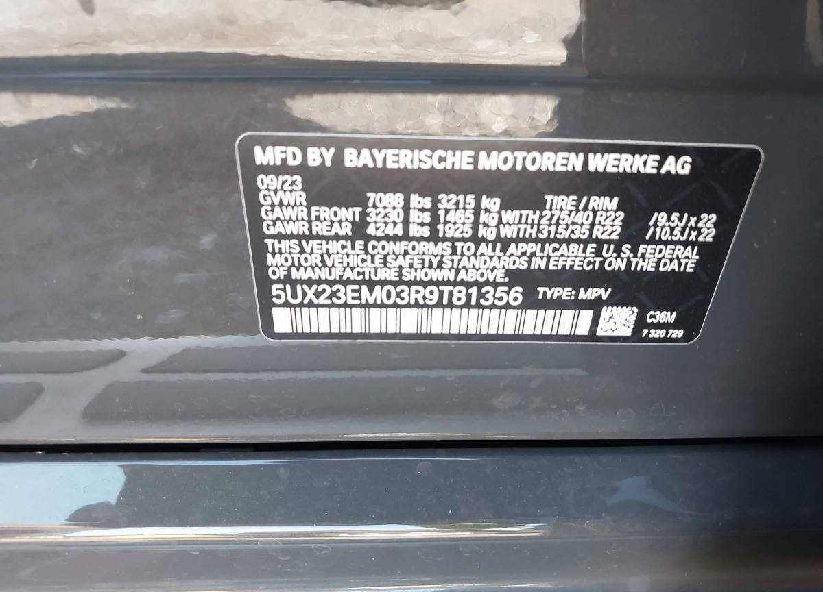 5UX23EM03R9T81356 BMW X7 2024 Grey – history, photos, price