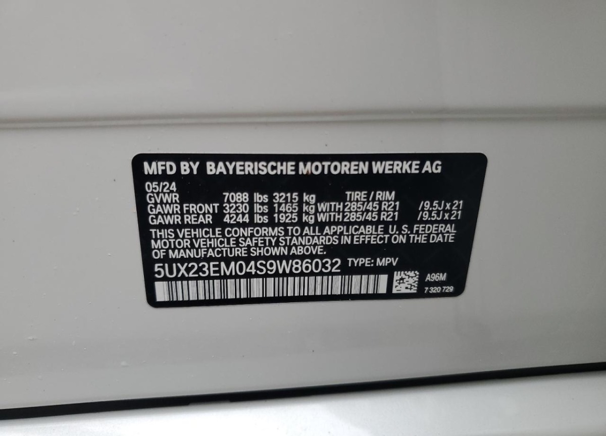 5UX23EM04S9W86032 BMW X7 2025 White – history, photos, price