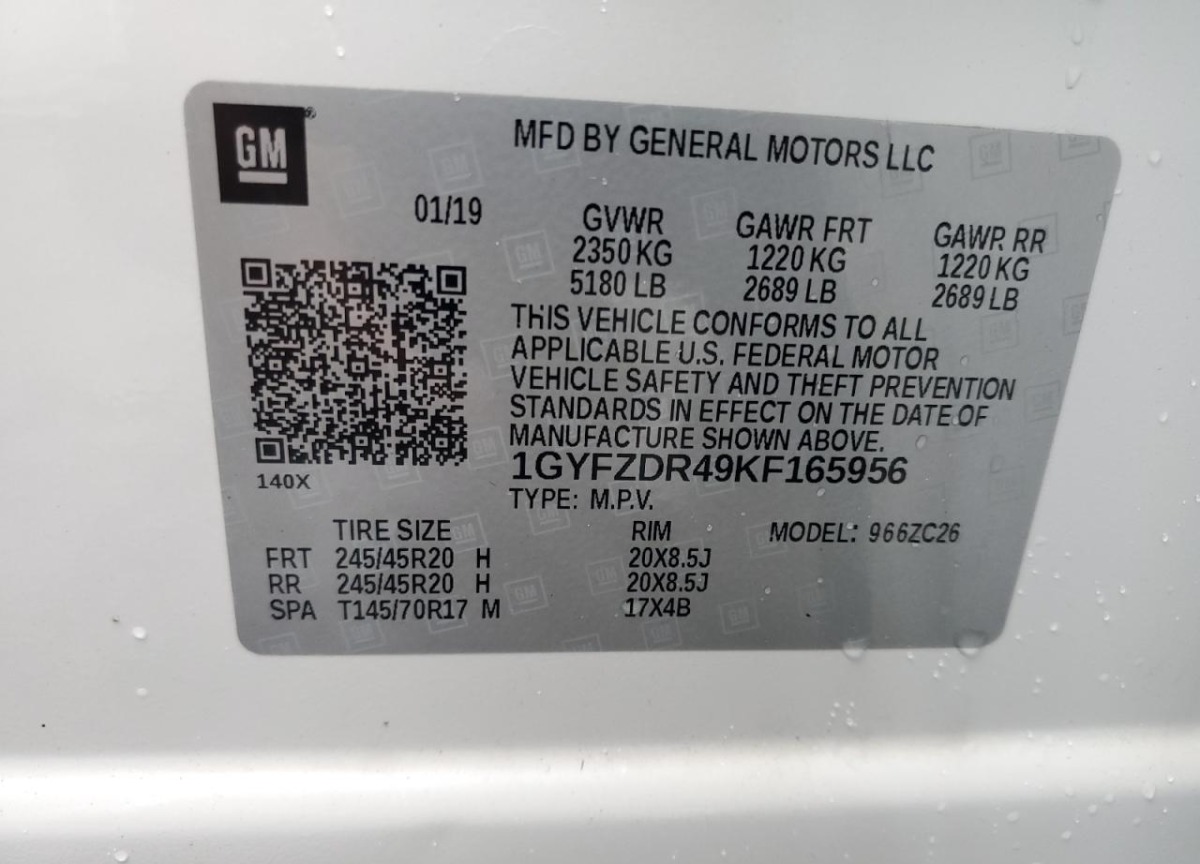 VIN:1GYFZDR49KF165956