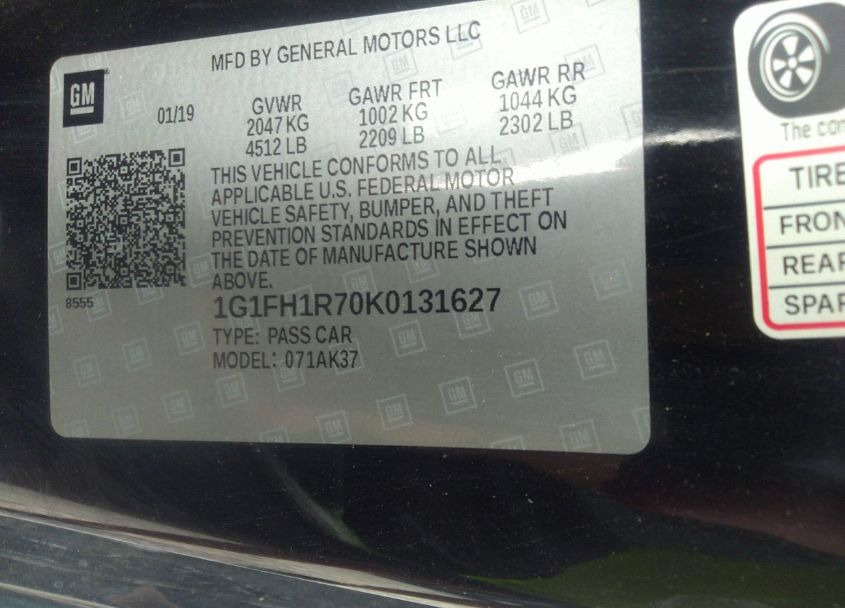VIN:1G1FH1R70K0131627