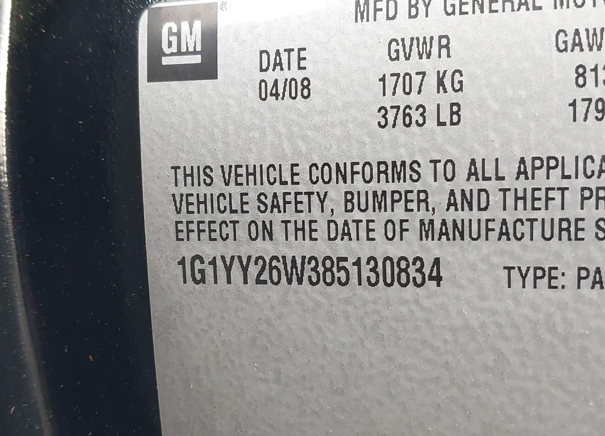 VIN:1G1YY26W385130834