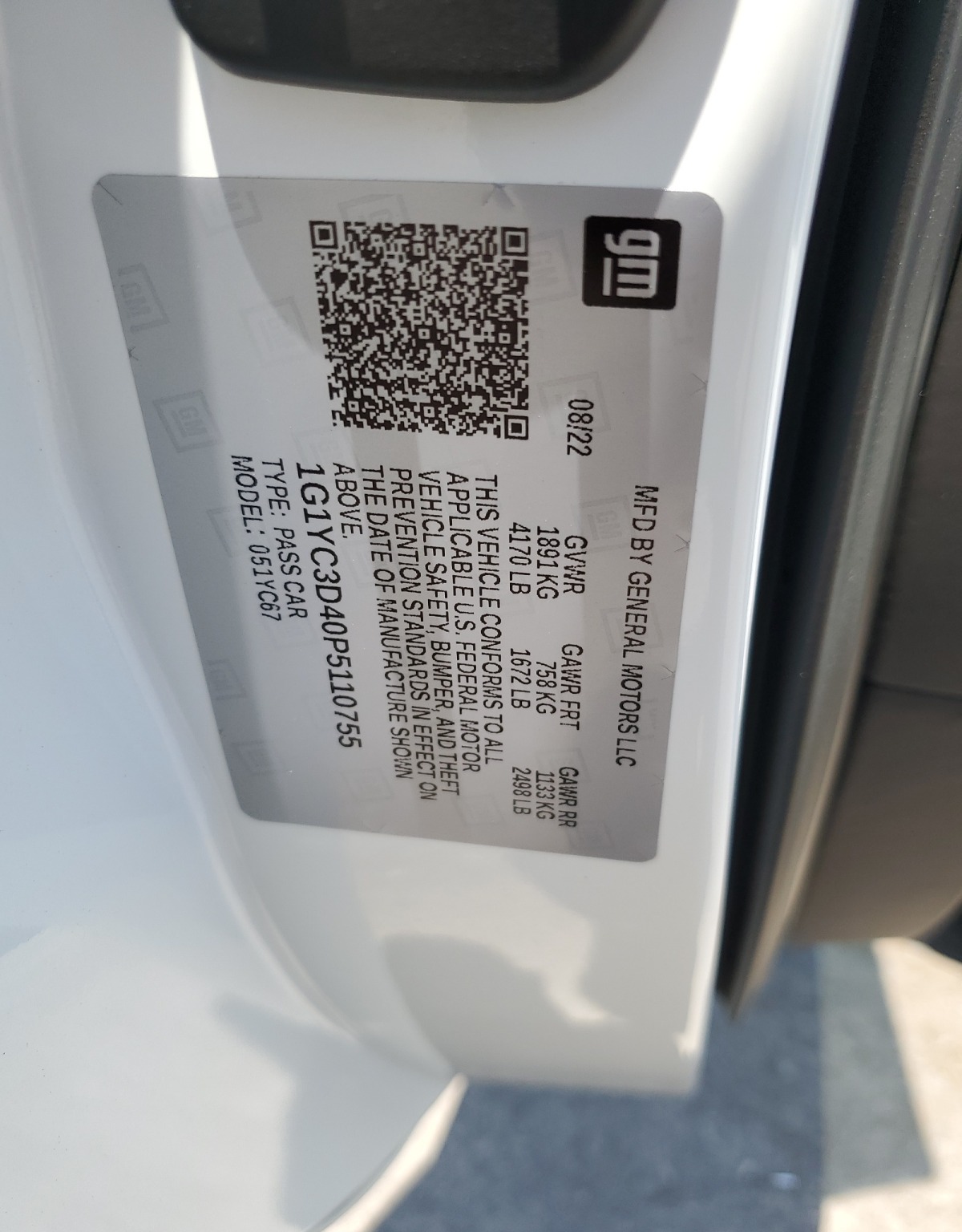 • VIN: 1G1YC3D40P5110755