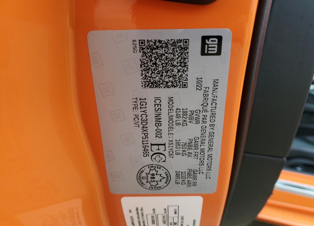 1G1YC3D4XP5116465 Chevrolet Corvette 2023 Orange – history, photos, price