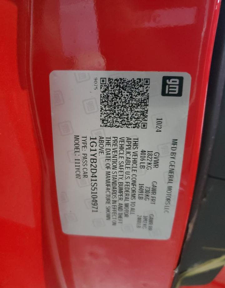 1G1YB2D41S5104971 Chevrolet Corvette Stingray 2025 Red – history, photos, price