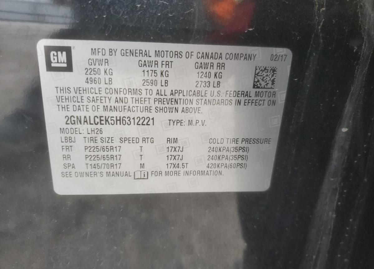 VIN:2GNALCEK5H6312221