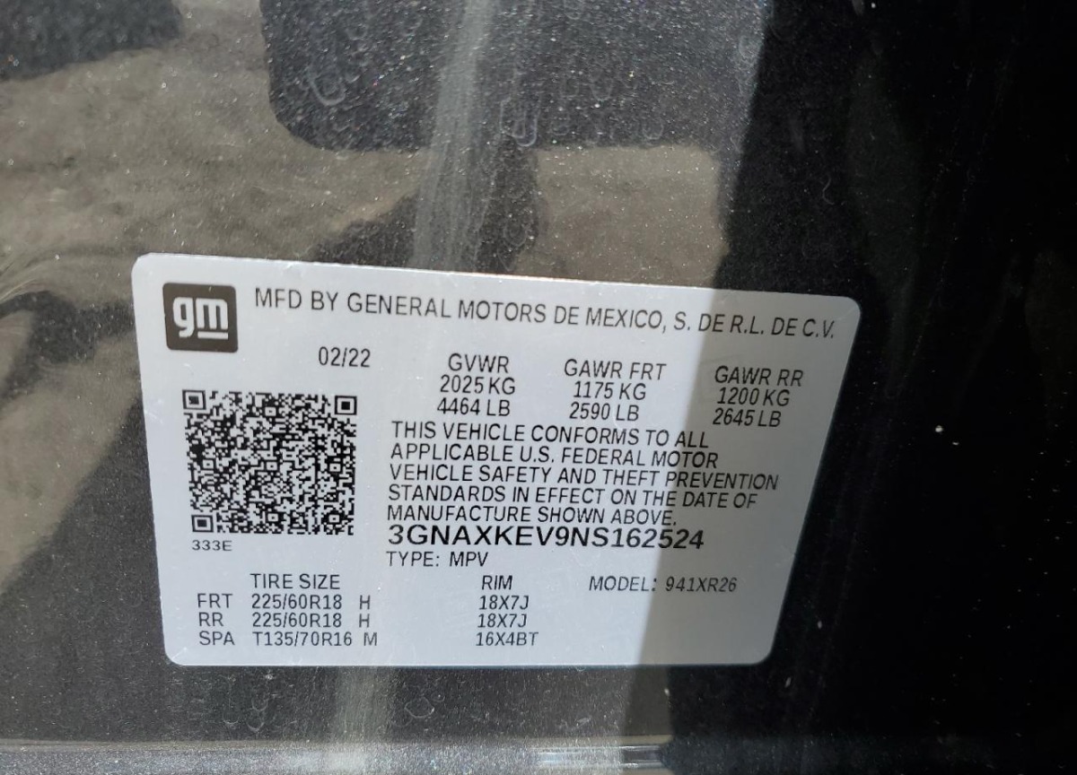 VIN:3GNAXKEV9NS162524