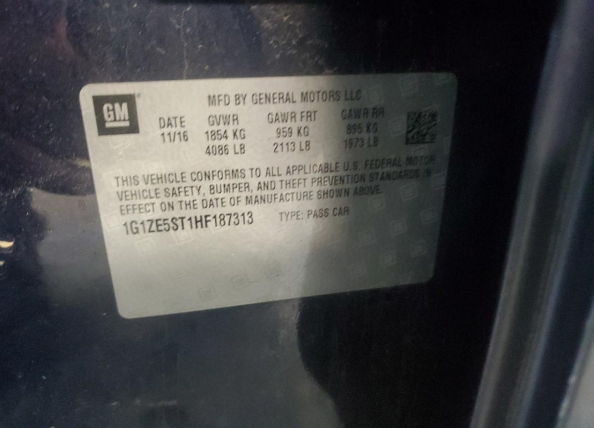 • VIN: 1G1ZE5ST1HF187313