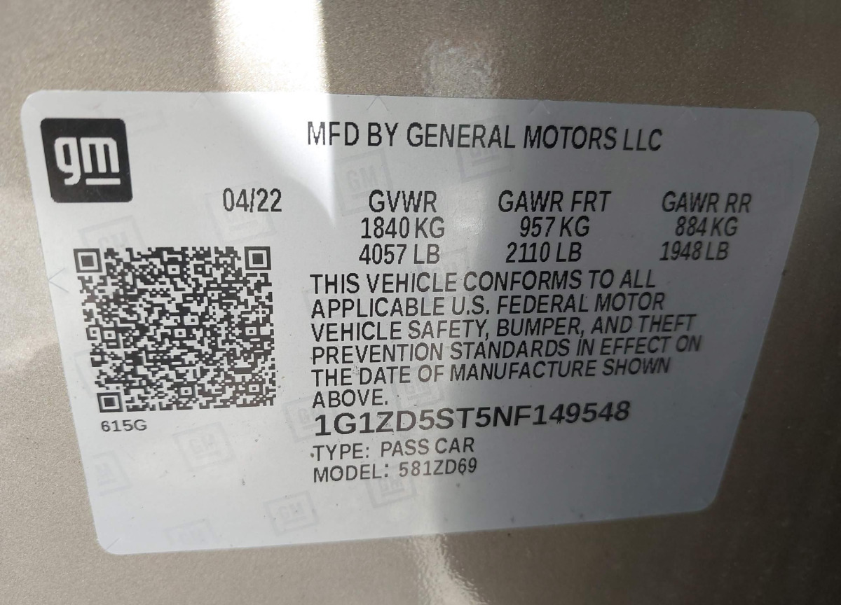 VIN:1G1ZD5ST5NF149548